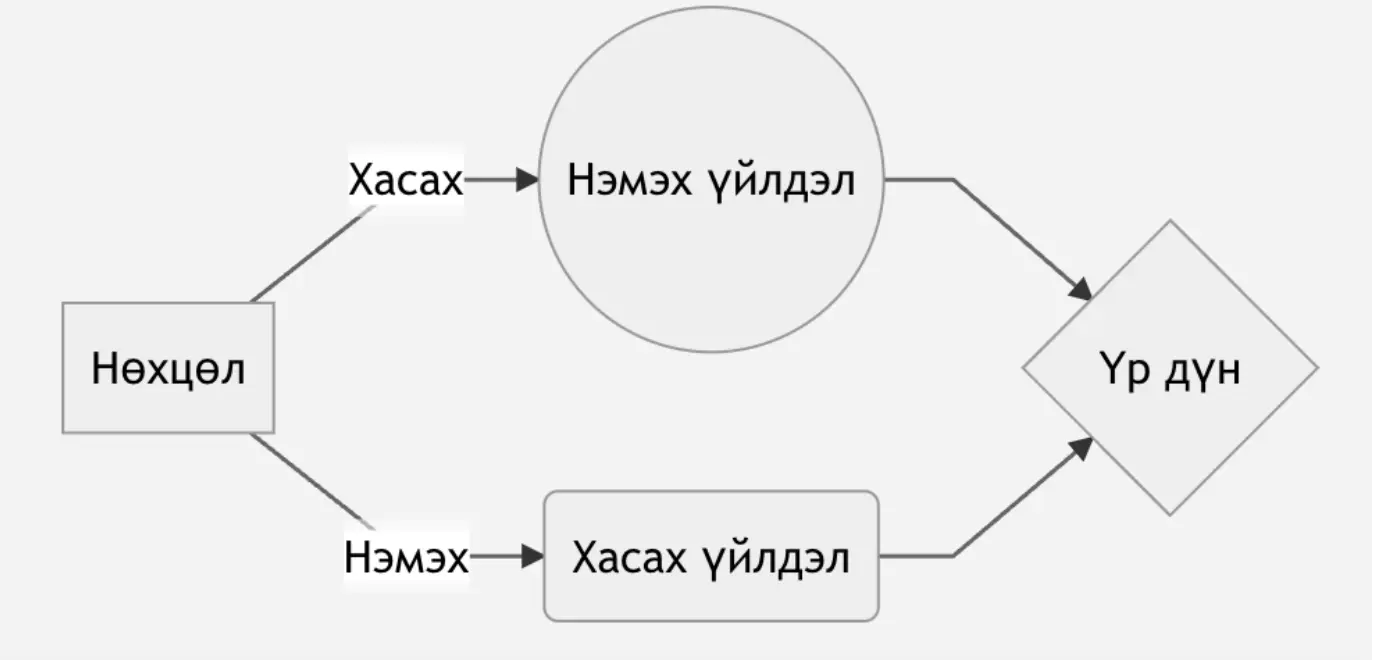 Заримдаа ямар нэгэн үйлдэл хийхэд хэд хэдэн нөхцөл бүрдэж байж боломжтой болдог. Жишээ нь Болд маргааш найз Чимэгээтэй хамт дугуй унамаар байлаа гэж бодъё. Чимгээ гэрийн даалгавар ихтэй байгаа гэж хэлсэн. Бас бороо орж магадгүй үүлэрхэг байгаад байдаг. Тэгэхээр дараах 2 нөхцөл БҮГД биелж байж маргааш сайхан зугаалах боломжтой болно.