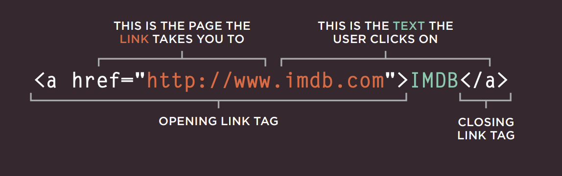 a Link үүсгэдэг tag. href attribute-ийг агуулдаг. href дээрх утга нь link дээр дарах үед шилжих хуудас. Өөр website-руу холбогдохын тулд href attribute дээр тухайн site-ийн үндсэн хаяг буюу absolute URL байна.