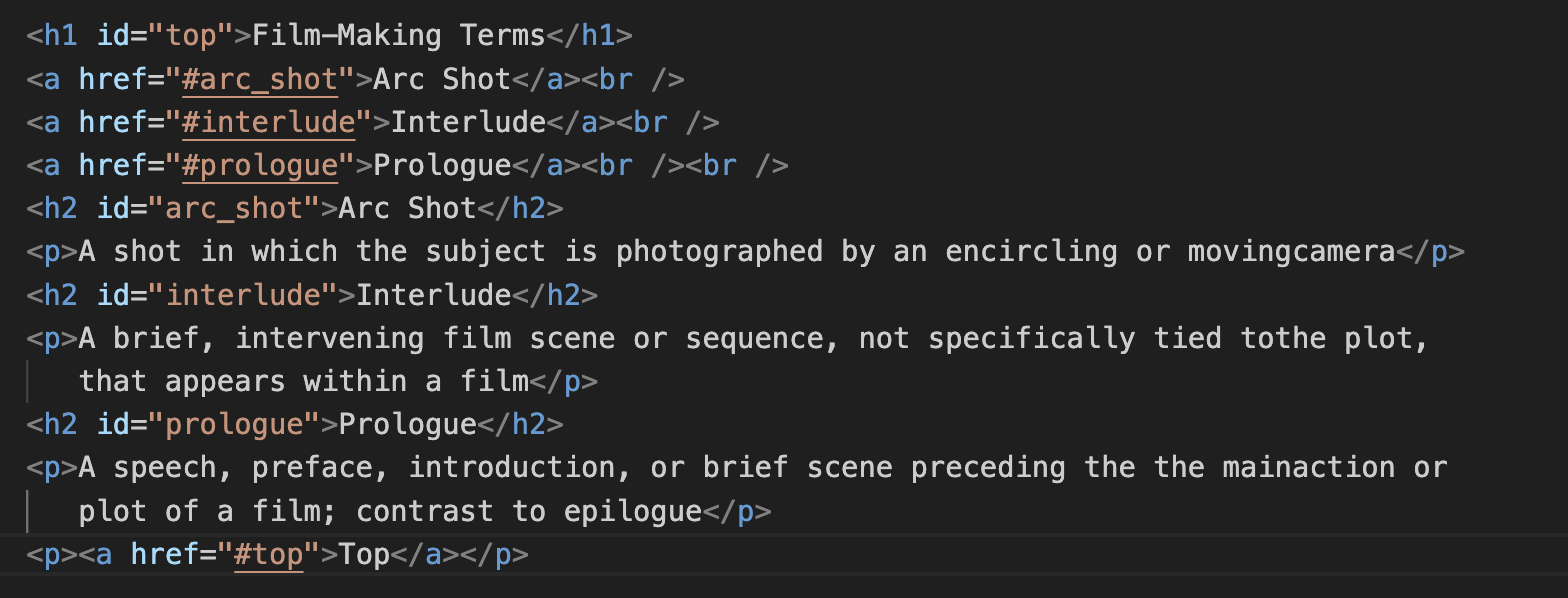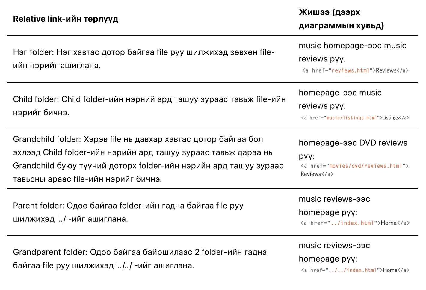 Жишээ дээрх a href="#top" нь хамгийн дээд хэсгийн h1 элементийг зааж байгаа.