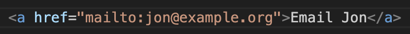 Email link үүсгэхдээ a элементийг ашиглана. Харин href-ийн утгад mailto: гэсэн түлхүүр үг бичиж араас нь email илгээх хаягийг залгана: