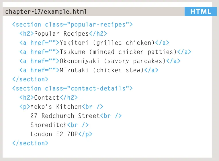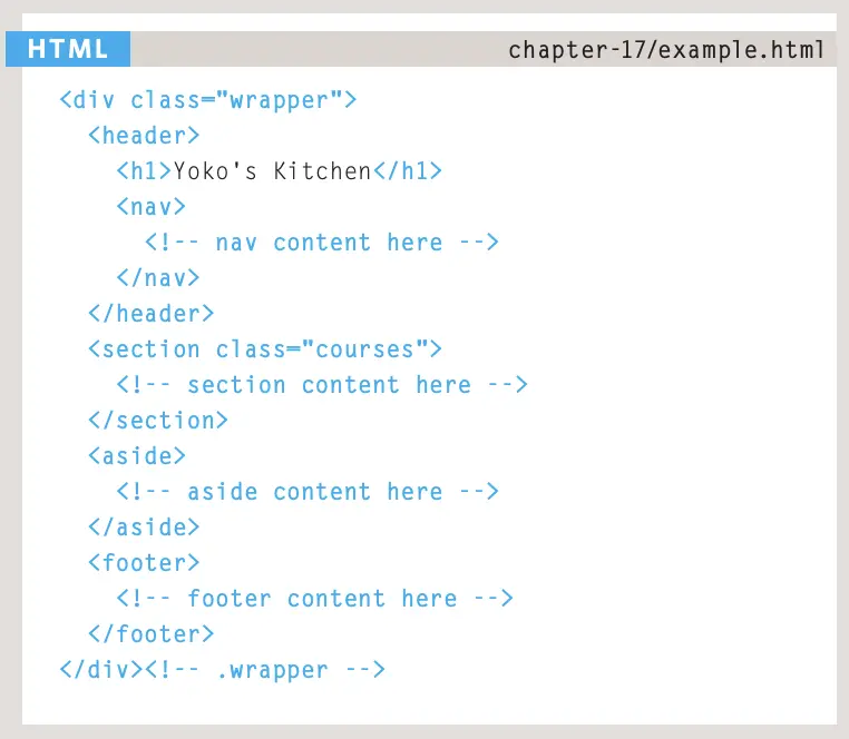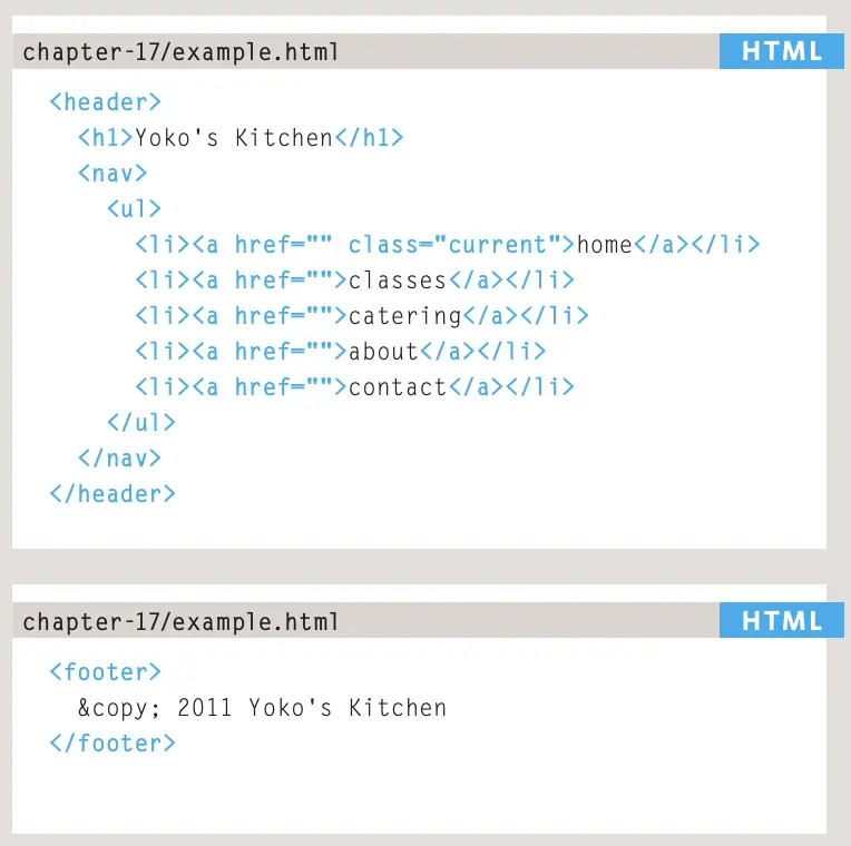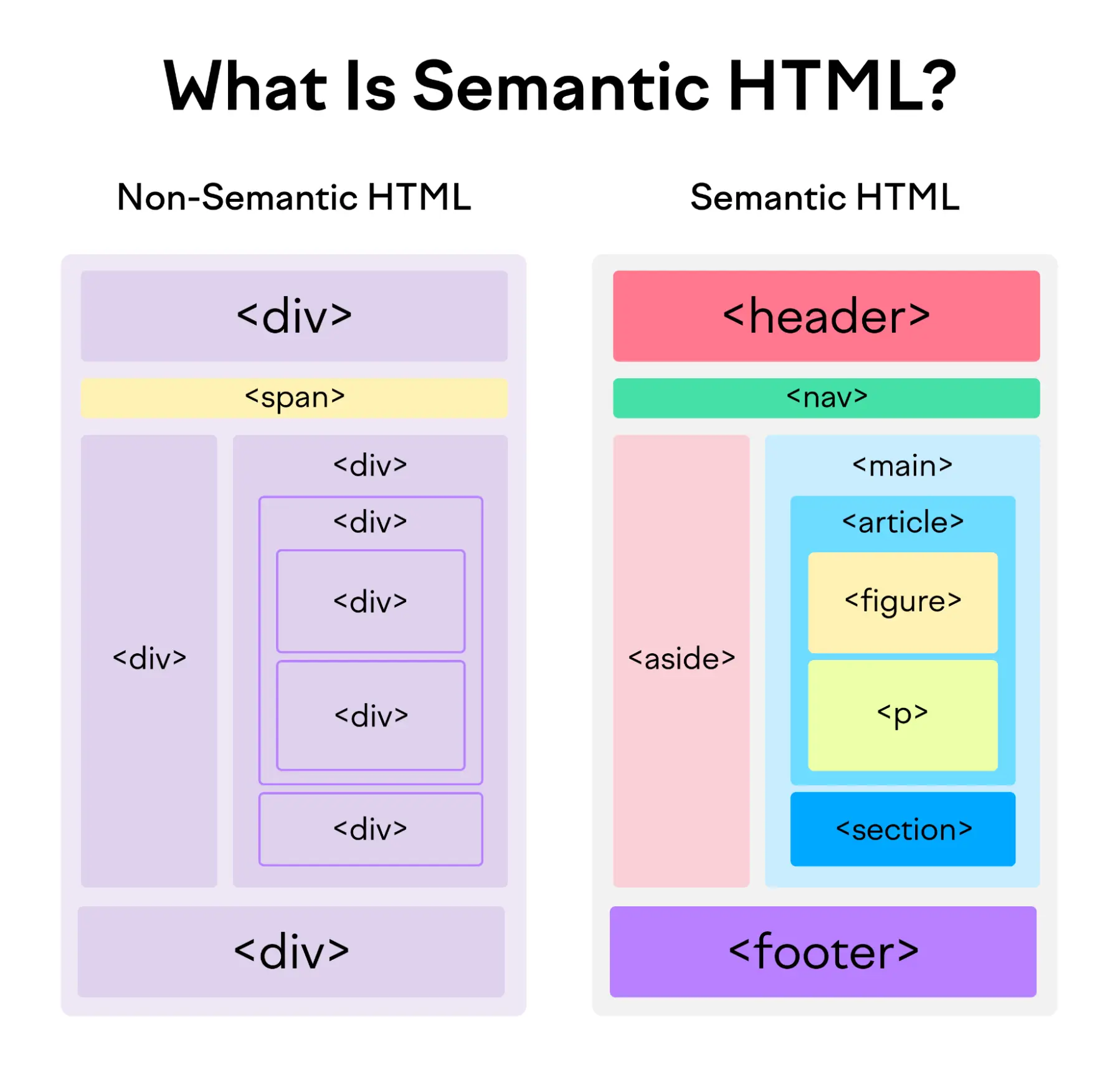 Өмнө нь веб хуудасны элементүүд (толгой, нийтлэл, доод хэсэг, хянах хэсэг гэх мэт хэсгүүд)-ийг бүлэглэж харуулахын тулд <div> элементийг ашиглаад тухайн <div> элементийнхээ үүргийг харуулахын тулд заавал class эсвэл id ашигладаг байсан.