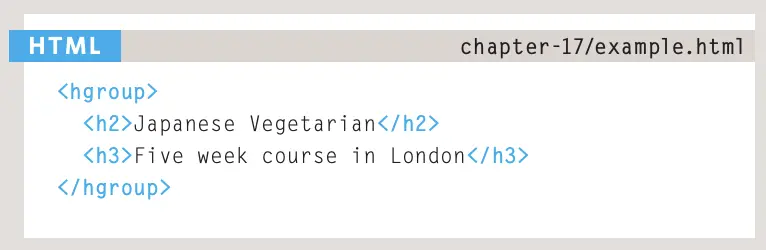<hgroup> нь <h1>-ээс <h6> хүртэлх элементүүд нийлээд нэг гарчгийн үүрэг гүйцэтгэж буй үед тэдгээрийг багцлахад хэрэглэгдэнэ.